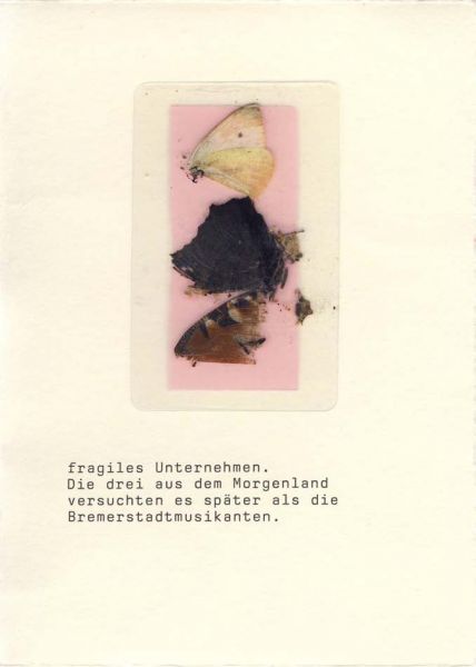 Geboren 1966 in Braunschweig. Ana Laibach beoachtet, laminiert und kommentiert nicht nur Fliegen, andere Insekten und Wollmäuse, sie arbeitet auch, und hauptsächlich: als Malerin, Grakerin, als Raumkonzept- Entwicklerin, macht kurze Filme, mag Worte und macht Musik.